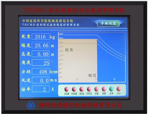 1.實時顯示:以圖形和數值實時顯示當前工作參數,包括起重量、力矩、幅度、回轉角度及起升高度(圖形為塔機額定起重特性曲線)